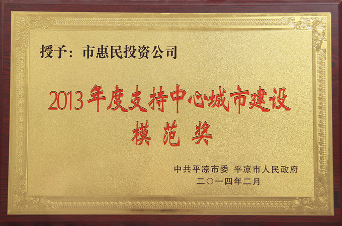 2013年度支持中心城市建設模范獎